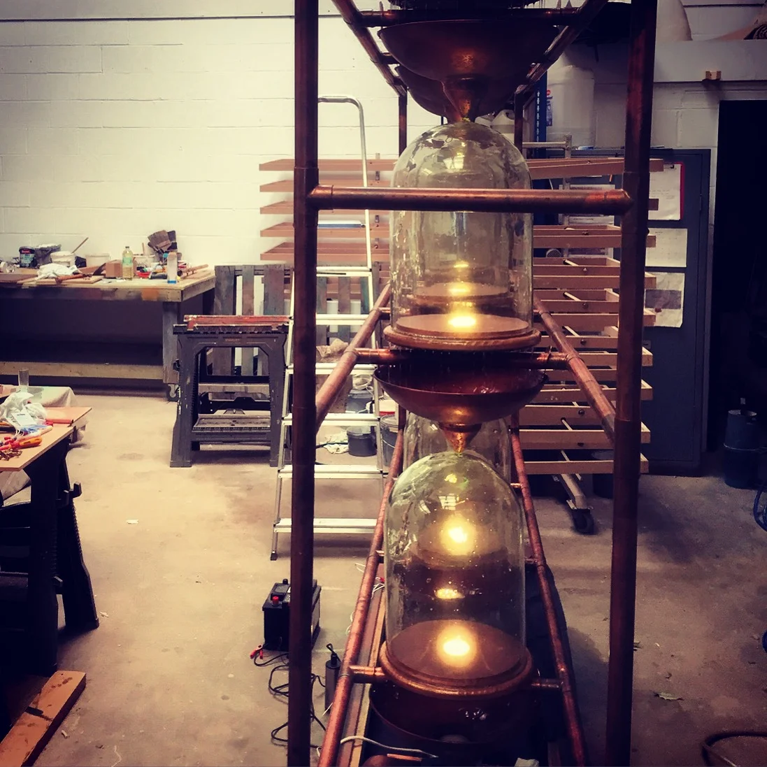 We created an eye-catching installation which had a perfect continuous flow of oil running down mood-lit bell jars. It was the main feature of this press event.