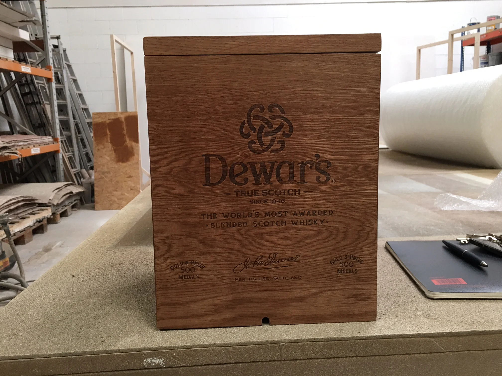 We were commissioned to make engraved wooden boxes for a Dewar Whisky event.